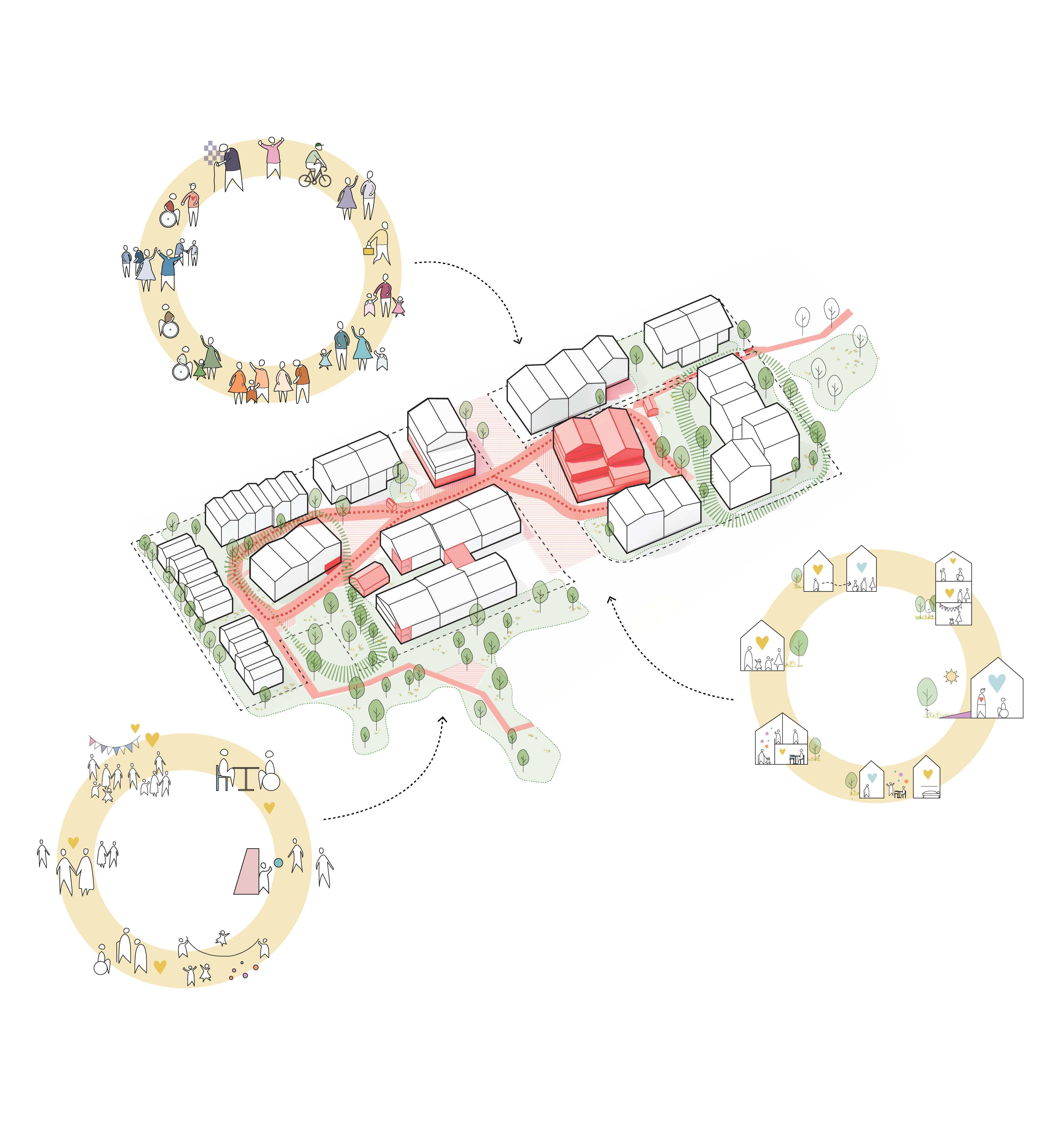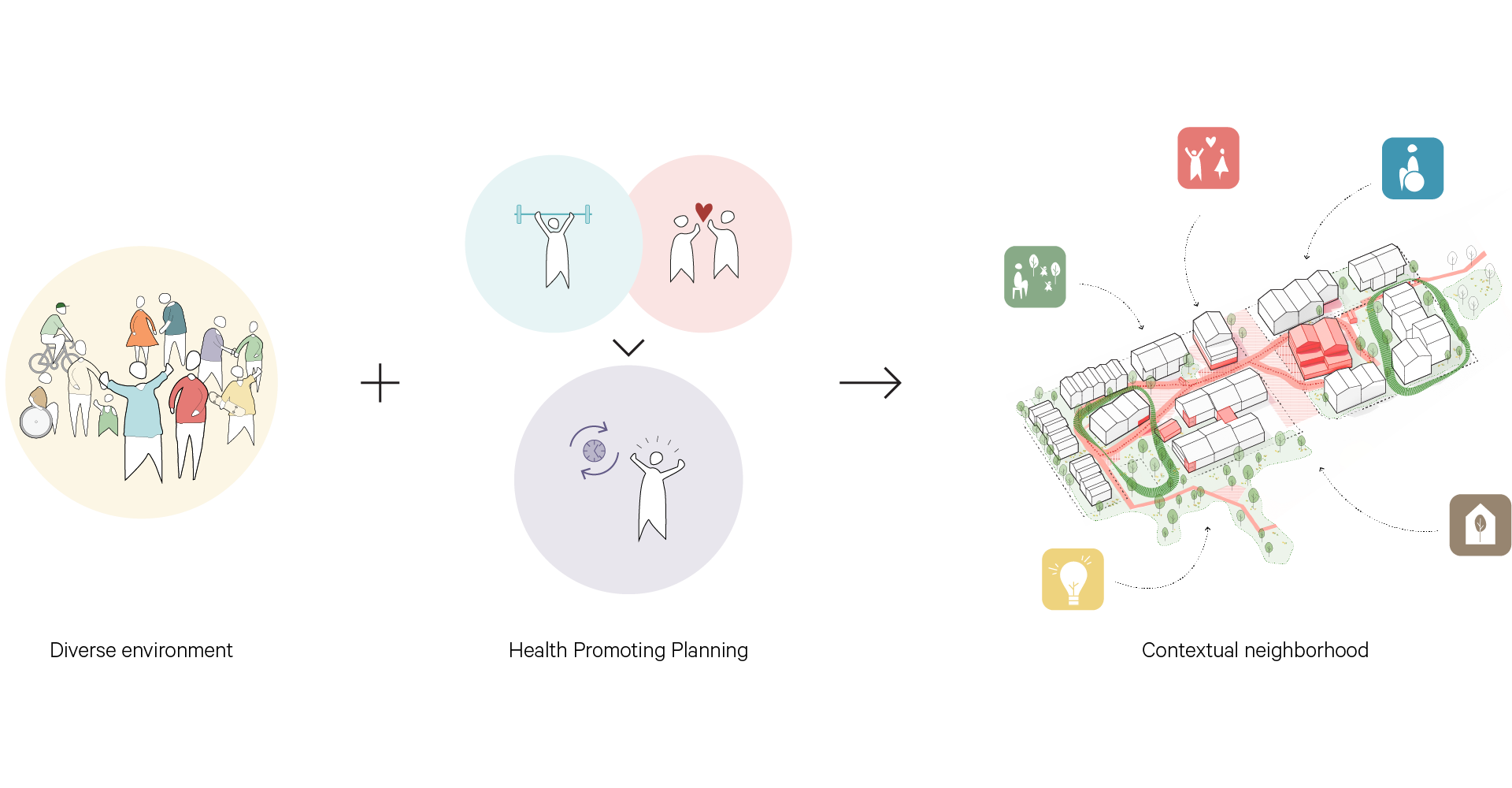 The ambition is to develop an urban area as a new healthcare model that integrates healthcare services and offers a mix of housing typologies and integrated care services, creating a diverse living environment with residents from multiple generations and varying needs. Here, everyone can obtain age-appropriate housing that suits their physical and cognitive mastery level. As well as receiving appropriate preventive measures, treatment and rehabilitation.